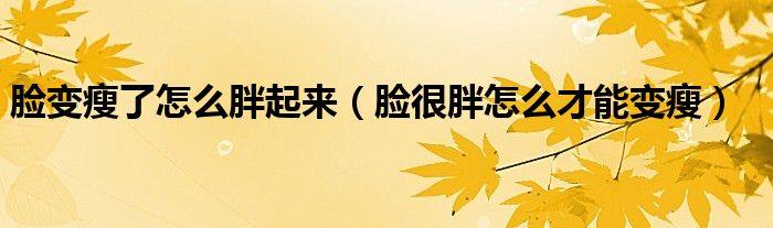 大家好,知識小編來為大家解答以上的問題。臉變瘦了怎么胖起來,臉很胖怎么才能變瘦很多人還不知道,現在讓我們一起來看看吧!