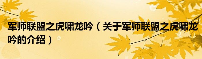 大家好,小新來(lái)為大家解答以上的問(wèn)題。軍師聯(lián)盟之虎嘯龍吟,關(guān)于軍師聯(lián)盟之虎嘯龍吟的介紹很多人還不知道,現(xiàn)在讓我們一起來(lái)看看吧!