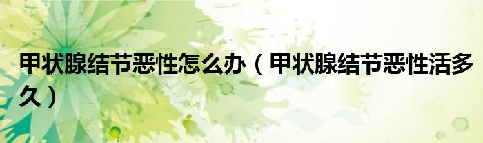 大家好,知識小編來為大家解答以上的問題。甲狀腺結(jié)節(jié)惡性怎么辦,甲狀腺結(jié)節(jié)惡性活多久很多人還不知道,現(xiàn)在讓我們一起來看看吧!