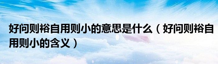 大家好,伊人來為大家解答以上問題。好問則裕自用則小的意思是什么,好問則裕自用則小的含義很多人還不知道,現(xiàn)在讓我們一起來看看吧!