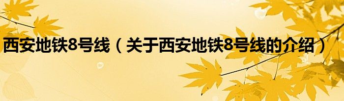 大家好,小新來(lái)為大家解答以上的問(wèn)題。西安地鐵8號(hào)線,關(guān)于西安地鐵8號(hào)線的介紹很多人還不知道,現(xiàn)在讓我們一起來(lái)看看吧!