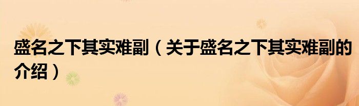 摘要大家好,小新來(lái)為大家解答以上的問(wèn)題。盛名之下其實(shí)難副,關(guān)于盛名之下其實(shí)難副的介紹很多人還不知道,現(xiàn)在讓我們一起來(lái)看看吧!1、盛名之