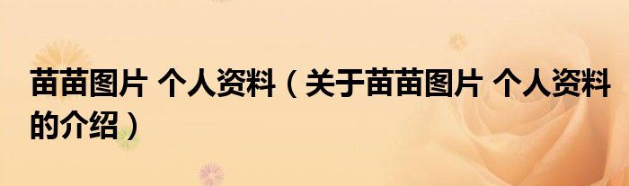 大家好,小新來為大家解答以上的問題。苗苗圖片 個人資料,關(guān)于苗苗圖片 個人資料的介紹很多人還不知道,現(xiàn)在讓我們一起來看看吧!