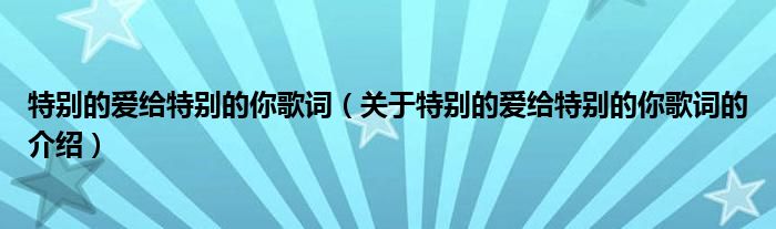大家好,小新來為大家解答以上的問題。特別的愛給特別的你歌詞,關(guān)于特別的愛給特別的你歌詞的介紹很多人還不知道,現(xiàn)在讓我們一起來看看吧!