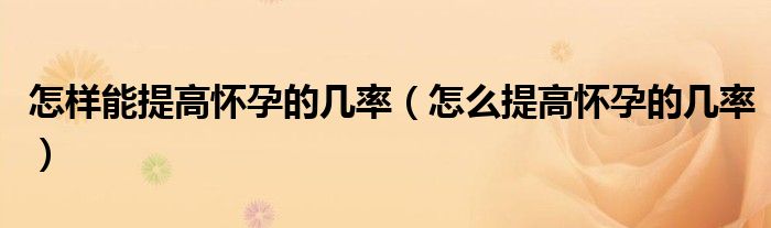 大家好,小新來為大家解答以上的問題。怎樣能提高懷孕的幾率,怎么提高懷孕的幾率很多人還不知道,現(xiàn)在讓我們一起來看看吧!