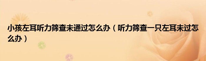 摘要大家好,小新來為大家解答以上的問題。小孩左耳聽力篩查未通過怎么辦,聽力篩查一只左耳未過怎么辦很多人還不知道,現(xiàn)在讓我們一起來看看吧