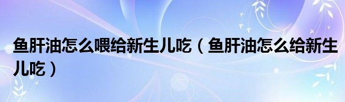 摘要大家好,小新來為大家解答以上的問題。魚肝油怎么喂給新生兒吃,魚肝油怎么給新生兒吃很多人還不知道,現(xiàn)在讓我們一起來看看吧!1、新生兒
