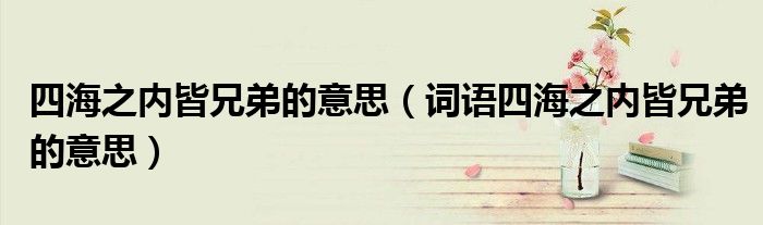 2、四海兄弟(拼音:sh m:I zhnI JiXi ng)是一個(gè)來(lái)源于歷史故事的成語(yǔ),起源于《論語(yǔ)顏淵》。