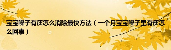 摘要大家好,小新來為大家解答以上的問題。寶寶嗓子有痰怎么消除最快方法,一個月寶寶嗓子里有痰怎么回事很多人還不知道,現(xiàn)在讓我們一起來看看