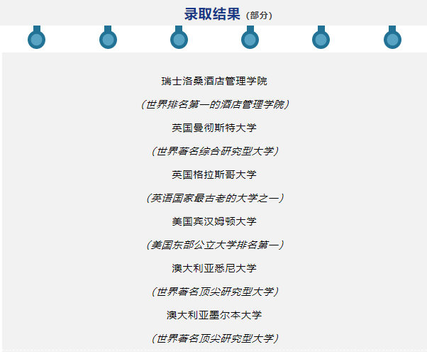 熱情、堅韌、勇敢、多元的顧瀅,在申請季將自己獨一無二的特質(zhì)一股腦展現(xiàn)給了各國名校,除了瑞士洛桑酒店管理學院之外,她還收獲了來自英國、美國、澳大利亞等國家的多所世界名校的錄取,這些院校都在為她充滿活力的青春時光喝彩!希望她也在自己心儀的院校中繼續(xù)勇敢迎接挑戰(zhàn),追夢路上昂首前行!