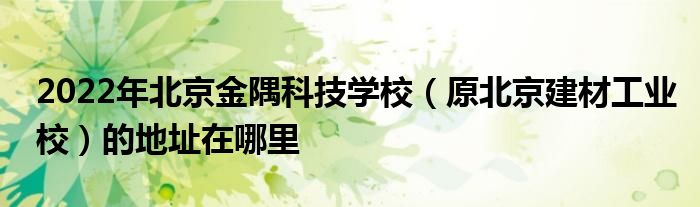 大家好,很多人在詢問2022年北京金隅科技學(xué)校(原北京建材工業(yè)校)的地址在哪里,下面小編給大家整理出來分享給大家。