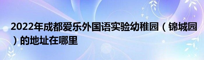 大家好,很多人在詢問2022年成都愛樂外國(guó)語實(shí)驗(yàn)幼稚園(錦城園)的地址在哪里,下面小編給大家整理出來分享給大家。