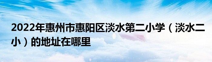 大家好,很多人在詢問2022年惠州市惠陽區(qū)淡水第二小學(淡水二小)的地址在哪里,下面小編給大家整理出來分享給大家。