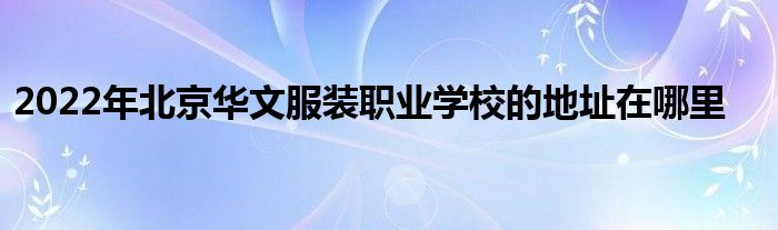 大家好,很多人在詢問2022年北京華文服裝職業(yè)學(xué)校的地址在哪里,下面小編給大家整理出來分享給大家。