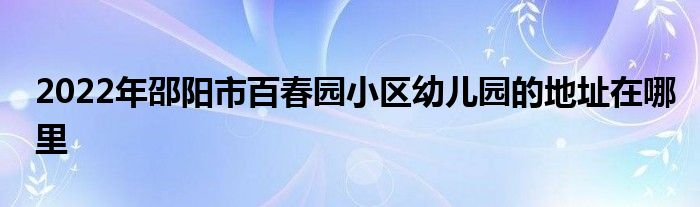 邵陽市百春園小區(qū)幼兒園的地址解答:
