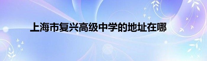 大家好,很多人在詢問上海市復興高級中學的地址在哪,下面小編給大家整理出來分享給大家。