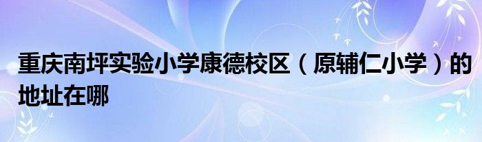 大家好,很多人在詢問重慶南坪實(shí)驗(yàn)小學(xué)康德校區(qū)(原輔仁小學(xué))的地址在哪,下面小編給大家整理出來分享給大家。