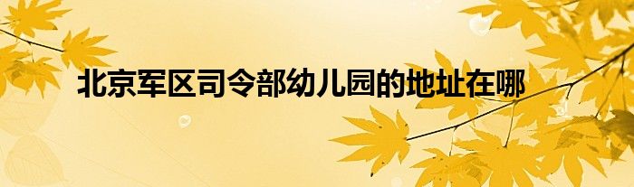 大家好,很多人在詢問北京軍區(qū)司令部幼兒園的地址在哪,下面小編給大家整理出來分享給大家。