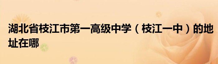 大家好,很多人在詢問(wèn)湖北省枝江市第一高級(jí)中學(xué)(枝江一中)的地址在哪,下面小編給大家整理出來(lái)分享給大家。