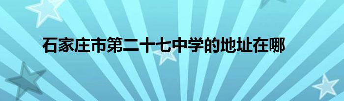 大家好,很多人在詢問石家莊市第二十七中學的地址在哪,下面小編給大家整理出來分享給大家。