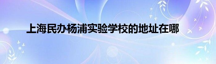 大家好,很多人在詢問上海民辦楊浦實(shí)驗(yàn)學(xué)校的地址在哪,下面小編給大家整理出來分享給大家。