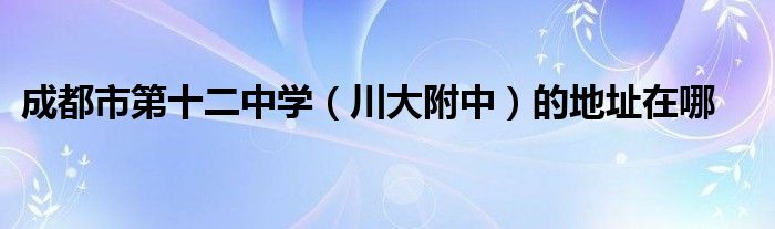 大家好,很多人在詢問成都市第十二中學(xué)(川大附中)的地址在哪,下面小編給大家整理出來分享給大家。