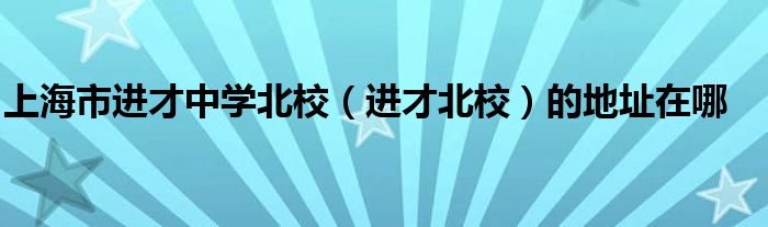 大家好,很多人在詢問上海市進才中學北校(進才北校)的地址在哪,下面小編給大家整理出來分享給大家。