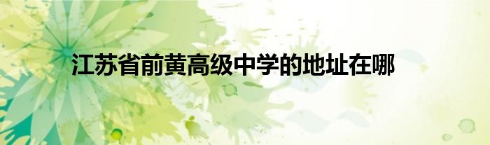 大家好,很多人在詢問江蘇省前黃高級中學的地址在哪,下面小編給大家整理出來分享給大家。