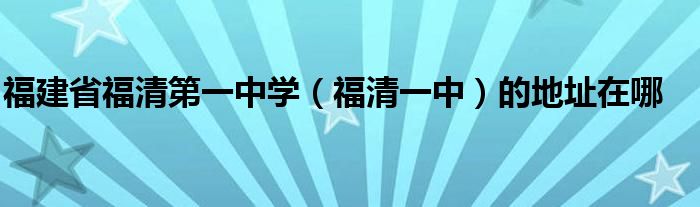 大家好,很多人在詢問福建省福清第一中學(xué)(福清一中)的地址在哪,下面小編給大家整理出來分享給大家。