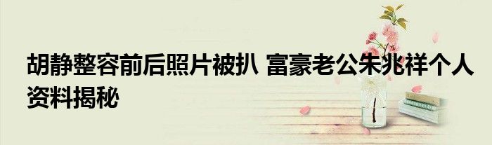 胡靜微博曬全家福引關注,整容前后照片被扒,其富豪老公朱兆祥也曝光,胡靜老公個人資料也被扒出,是馬來西亞孝恩集團的董事經(jīng)理,十幾歲就到英國留學,與胡靜是通過一次聚會相識,二人于08年結的婚。