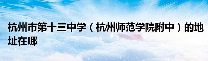 大家好,很多人在詢問杭州市第十三中學(xué)(杭州師范學(xué)院附中)的地址在哪,下面小編給大家整理出來分享給大家。