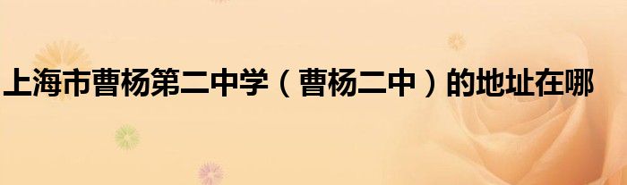 大家好,很多人在詢問上海市曹楊第二中學(xué)(曹楊二中)的地址在哪,下面小編給大家整理出來分享給大家。