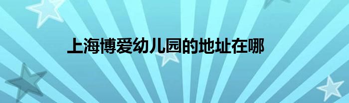 大家好,很多人在詢問上海博愛幼兒園的地址在哪,下面小編給大家整理出來分享給大家。