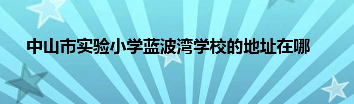 大家好,很多人在詢問中山市實驗小學藍波灣學校的地址在哪,下面小編給大家整理出來分享給大家。