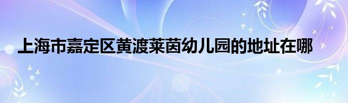 上海市嘉定區(qū)黃渡萊茵幼兒園的地址解答: