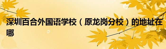 大家好,很多人在詢問深圳百合外國語學(xué)校(原龍崗分校)的地址在哪,下面小編給大家整理出來分享給大家。