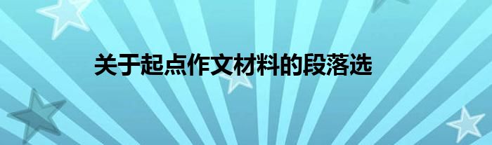 起點和人生就像一場馬拉松。一旦你從起點出發(fā),你就開始了你的旅程。起點是一個重要而神秘的詞。馬拉松里的那些加水站,就像人生的其他小起點。