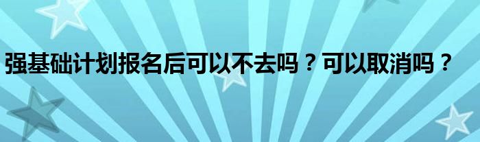 報(bào)了強(qiáng)計(jì)劃就不用去了。強(qiáng)計(jì)劃報(bào)名后,錄取前有1-2次主動(dòng)放棄機(jī)會(huì),在??荚嚈C(jī)會(huì)1次,主動(dòng)填報(bào)機(jī)會(huì)1次。高考成績(jī)公布后,考生可以選擇是否參加考試,是否填報(bào)志愿。