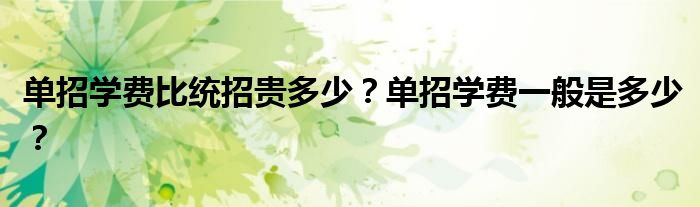 單招學(xué)費(fèi)和統(tǒng)招一樣。一般單招院校學(xué)費(fèi)2000到5000,大多一年3000,住宿費(fèi)1500到1600(四人),800,1200。