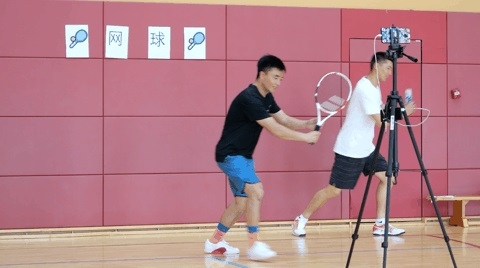 網(wǎng)球運動是一項集娛樂性、健身性、觀賞性、競賽性為一體的運動項目。在教練的帶領下,同學們以適合居家開展的腳步移動、揮拍練習、擊球、身體素質(zhì)等內(nèi)容進行練習。在教練有節(jié)奏的口號聲中,同學們互道加油,氣氛熱烈。