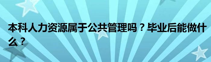 人力資源管理本科專業(yè)不屬于公共管理,屬于工商管理。人力資源管理要掌握管理學、經(jīng)濟學、人力資源管理的基本理論和知識;掌握人力資源管理的定性和定量分析方法。