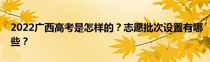 2022年廣西高考志愿共10批次。其中本科層次8個(gè)批次:本科提前批、特殊類型招生批次、專項(xiàng)計(jì)劃批次、本科第一批次、本科預(yù)科第一批次、本科預(yù)科第二批次A、本科預(yù)科第二批次b。