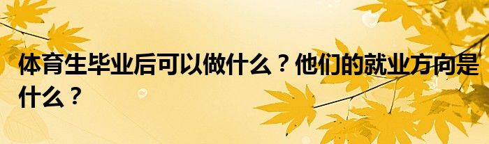 學生畢業(yè)后可以做教練、體育老師、裁判員、課程顧問、體育經理、體育經濟學家、體育記者等。