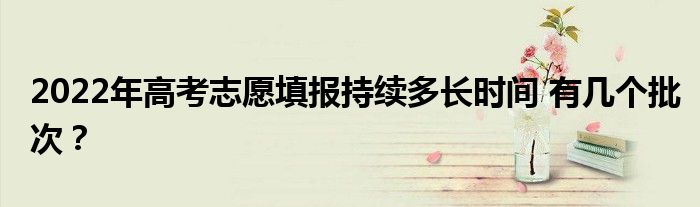 高考志愿填報(bào)的時(shí)間從開(kāi)始到結(jié)束大概持續(xù)三四天。提前批第一次報(bào)志愿一般是6月底,本科第一次批是7月初,專(zhuān)科最后一次批是7月中旬。以下是對(duì)該批次的介紹: