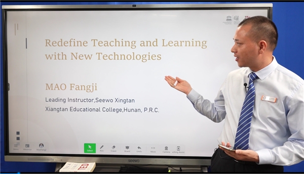如今,隨著全國(guó)各地教師信息技術(shù)應(yīng)用能力的提升和個(gè)人影響力的積累,教師們需要更大的舞臺(tái)。2021年,聯(lián)合國(guó)教科文組織高等教育創(chuàng)新中心為世界各國(guó)的教育工作者介紹中國(guó)的教育信息化建設(shè)成果,“希沃杏壇”導(dǎo)師毛方吉和秦嶺也參與其中。在兩位老師的精心準(zhǔn)備下,這一系列的國(guó)際線上直播課覆蓋了50多個(gè)國(guó)家,吸引了世界各地?cái)?shù)千名教育工作者參加。