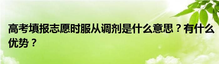 服從的好處在報(bào)名專業(yè)已滿的情況下,如果考生選擇服從調(diào)劑,確實(shí)可以增加被錄取的幾率,因?yàn)楝F(xiàn)在的高考志愿都是采用平行志愿投檔錄取模式,以“分?jǐn)?shù)先行,一輪投檔”的方式錄取。對于每個(gè)考生來說,只有一次被投檔的機(jī)會!所以,當(dāng)你喜歡的專業(yè)不錄取你的時(shí)候,服從調(diào)劑就等于增加了你被本機(jī)構(gòu)其他專業(yè)錄用的機(jī)會。