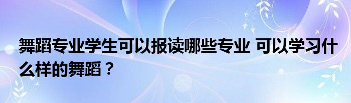 學(xué)生報(bào)考大學(xué)舞蹈時(shí),只能選擇與舞蹈相關(guān)的專業(yè),一般包括以下幾個(gè):舞蹈表演、舞蹈科學(xué)、編導(dǎo)、舞蹈教育、音樂舞蹈等。不同的專業(yè)有不同的研究方向,可以根據(jù)自己的情況選擇合適的專業(yè)。