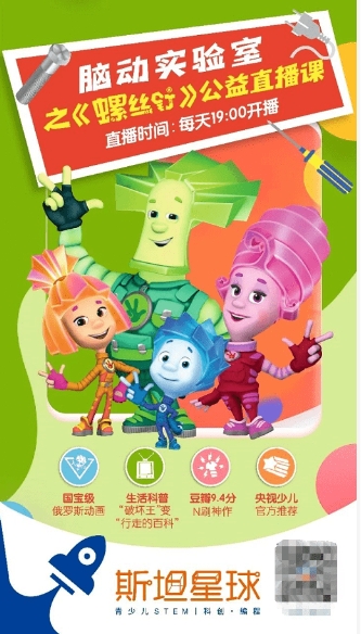 停課不停學(xué),疫情期間,星球公益直播系列重磅上線!俄羅斯國寶級動畫、央視力薦、豆瓣9.4分《螺絲釘直播課》、漲知“視”兒童護(hù)眼直播講座、《零基礎(chǔ)如何實(shí)現(xiàn)跨學(xué)科創(chuàng)新》干貨直播講座。