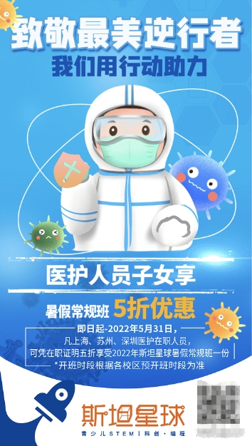 致敬最美逆行者,斯坦星球給您的一份專屬福利!上海、蘇州、深圳醫(yī)護(hù)子女報(bào)名暑假常規(guī)課可享五折優(yōu)惠。