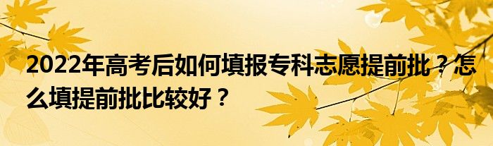 高考提前批怎么填比較好?高考提前批次早于普通批次。一般是高考結(jié)束后,提前開始申請。如果提前批次被報未錄取,不影響其他批次錄取。